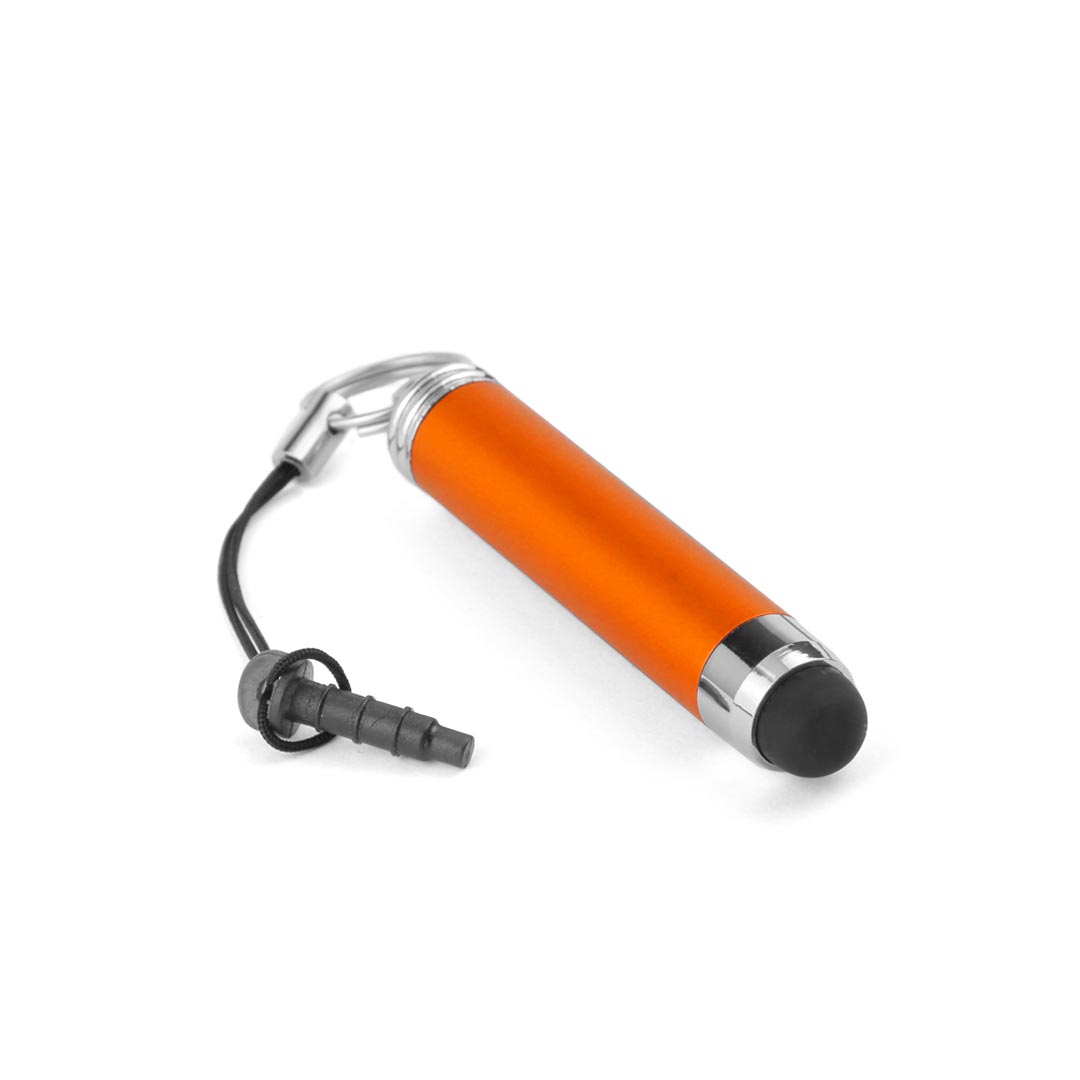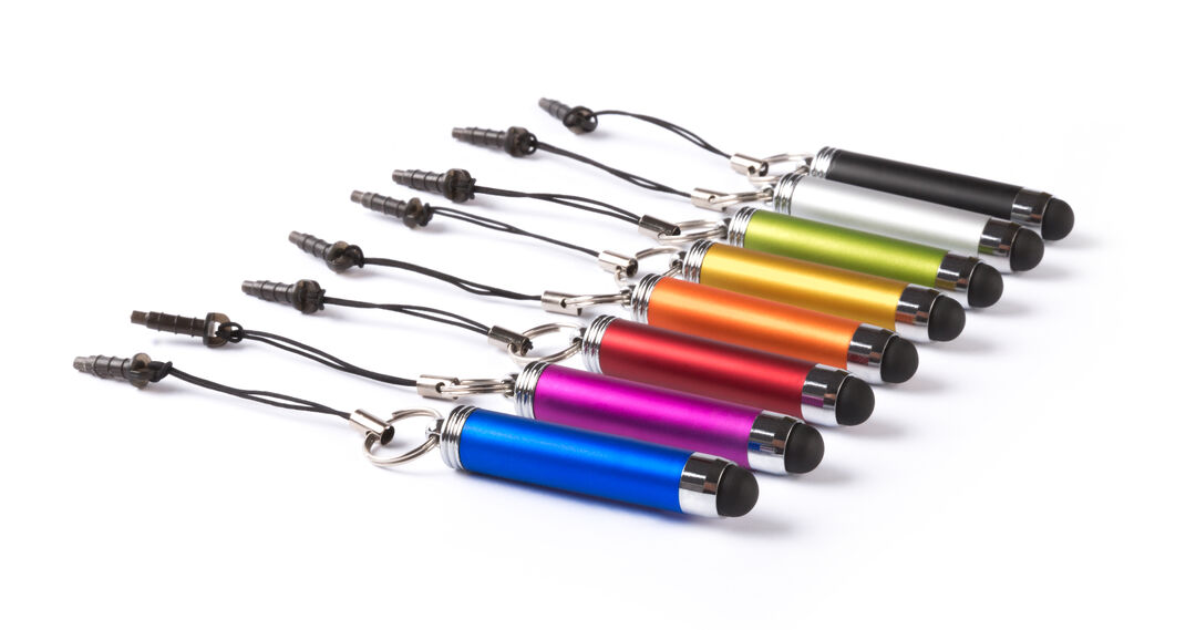 Bolígrafo puntero de diseño minimalista en desenfadados colores, con capucha giratoria de suave acabado, especialmente diseñada para marcaje en tampografía. Con cierre de anilla y sujeción a dispositivo mediante cinta con accesorio de fijación tipo jack 3