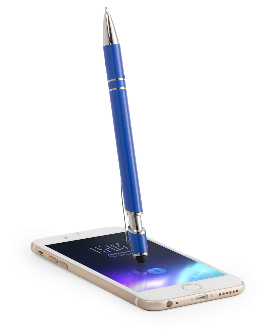 Bolígrafo puntero de mecanismo pulsador y original diseño. Acabado en variada gama de colores brillantes, con accesorios cromados y clip metálico. De cartucho jumbo y tinta azul. Carga Jumbo