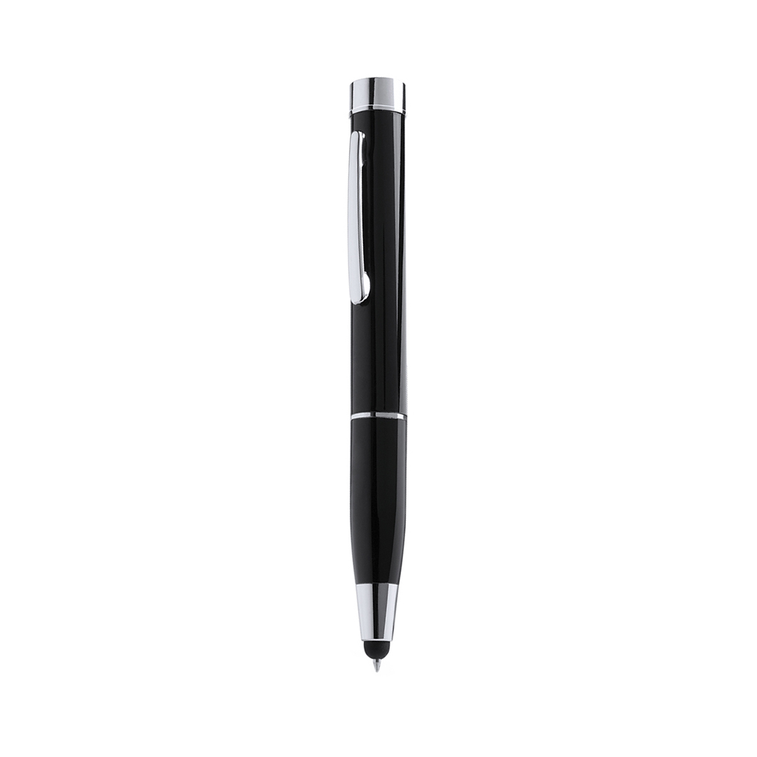 Bolígrafo tecnológico multifunción con batería auxiliar externa de 650 mAh de capacidad de carga, puntero en suave goma y de mecanismo giratorio, en tinta negra. Cable micro USB a juego incluido y presentado en atractiva caja de diseño. Las capacidades mo 650 mAh. Entrada Micro USB. Tinta Negra. Cable Incluido