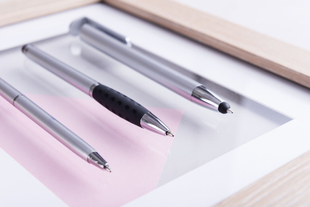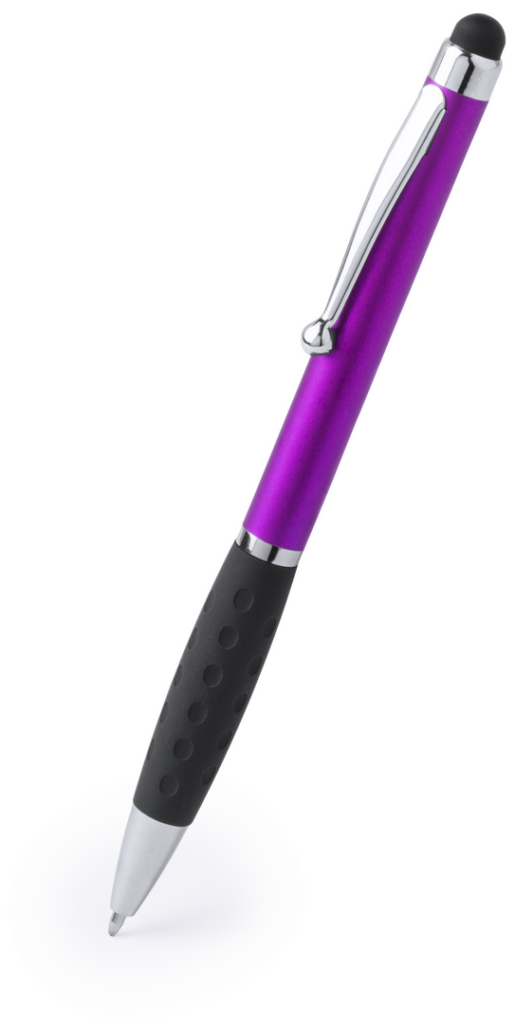 Bolígrafo puntero de mecanismo giratorio de elegante diseño bicolor con accesorios en color plateado brillante y cuerpo de suave acabado en llamativos colores metalizados brillantes. Con clip metálico y anilla a juego. Suave empuñadura de original diseño