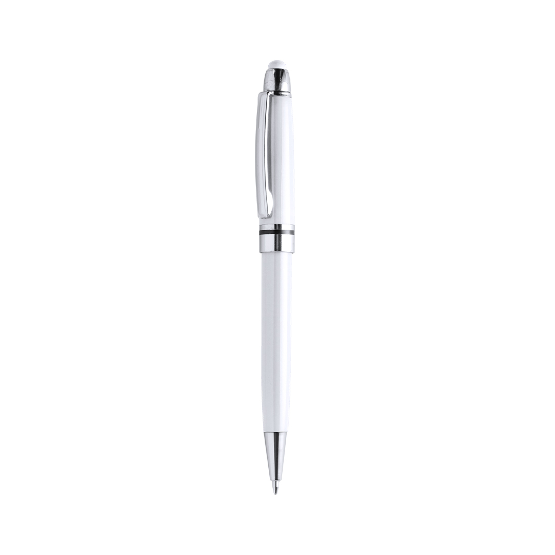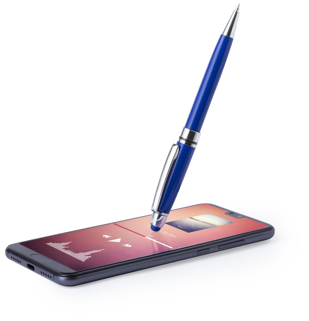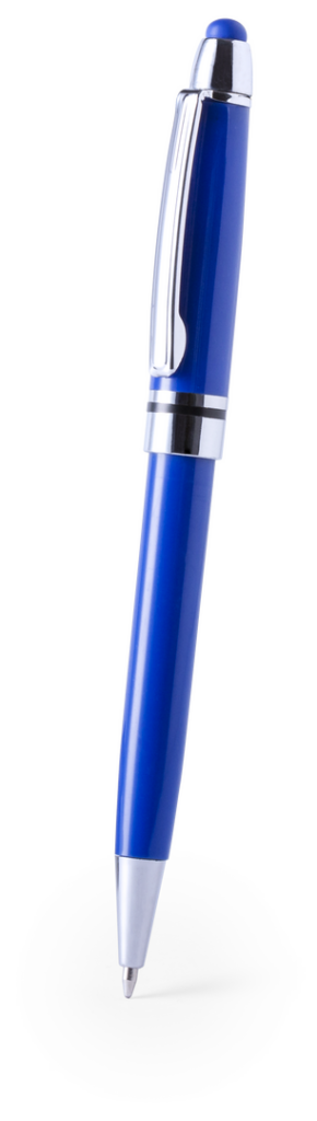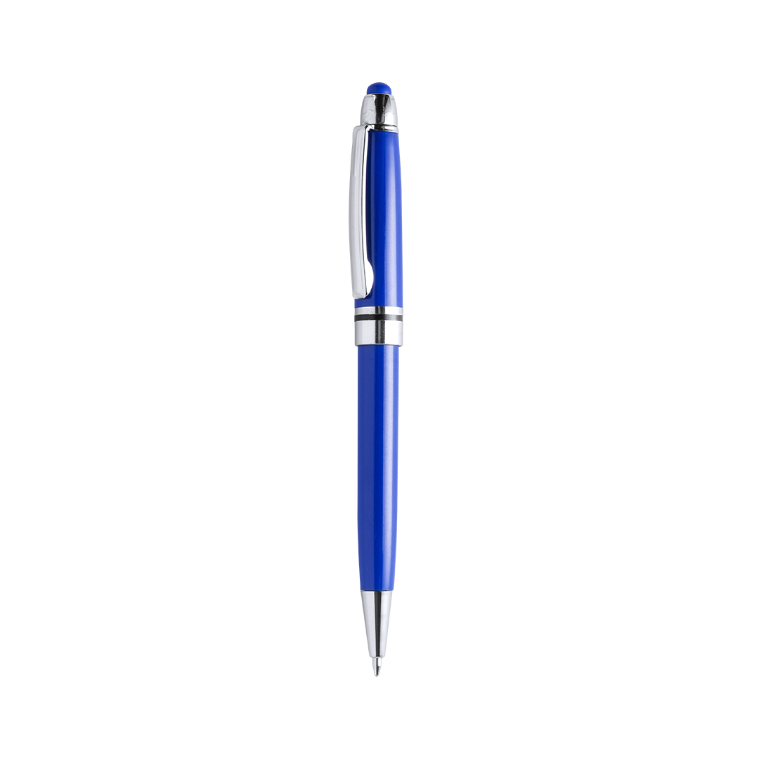 Bolígrafo puntero de colorido diseño, con cuerpo en vivos colores brillantes a juego con el puntero. De mecanismo pulsador, con detalles cromados y clip metálico. Cartucho jumbo y tinta azul. Carga Jumbo