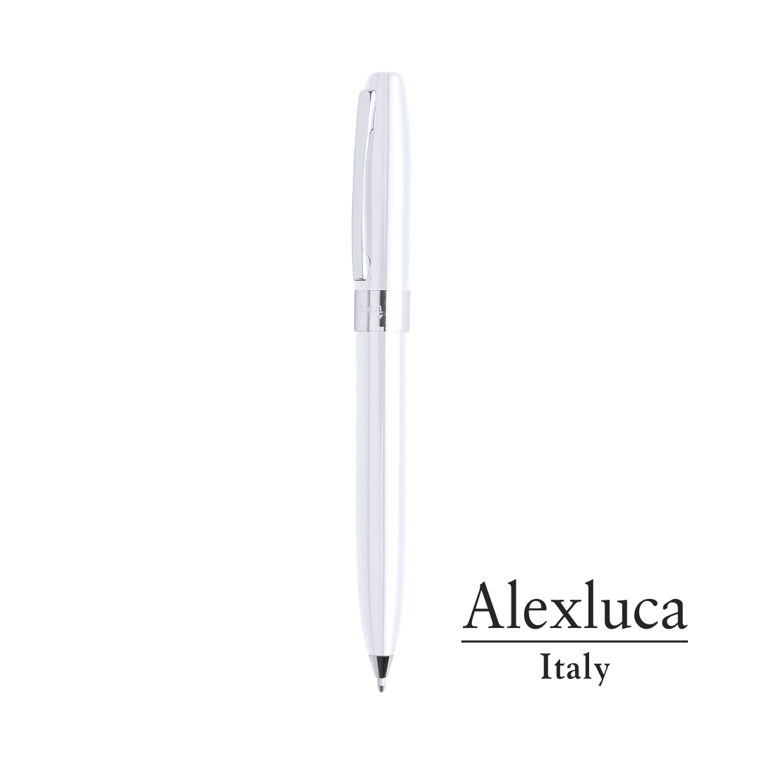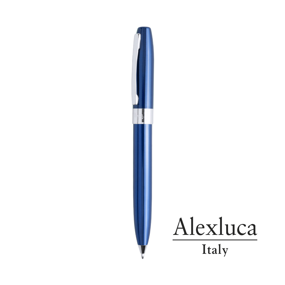 Bolígrafo de Alexluca de mecanismo giratorio en elegante diseño bicolor y suave cuerpo metálico en llamativos colores. Con clip y punta en acabado plateado brillante y logotipo de la marca en la anilla central. Presentado en estuche individual negro. En t