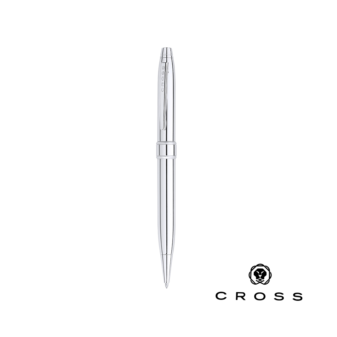 Bolígrafo modelo Stratford de Cross. Con mecanismo retráctil y cuerpo metálico en sobrios colores. Presentado en elegante estuche individual en color negro, con logotipo de la marca e interior en suave antelina a juego. En tinta negra. Tinta Negra