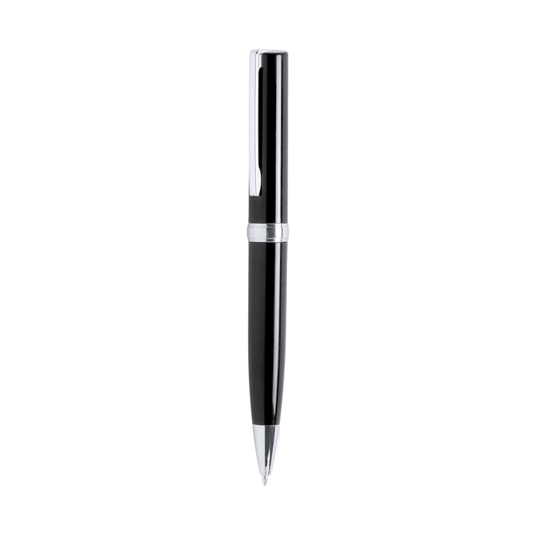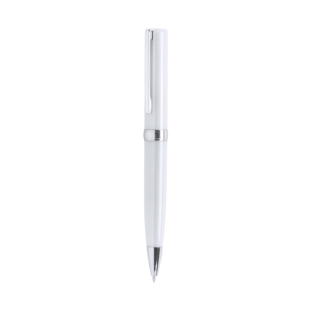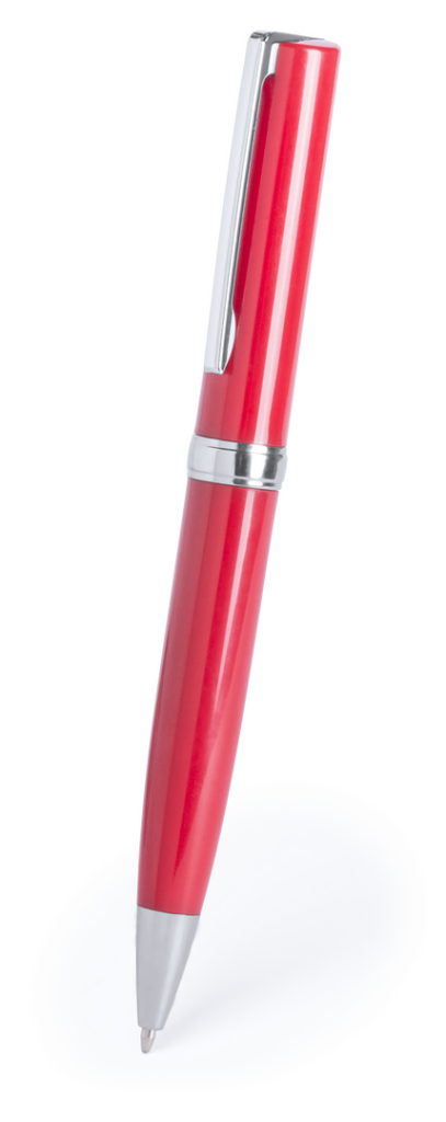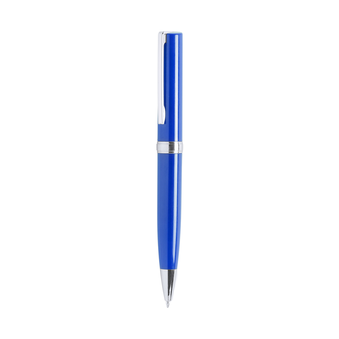 Bolígrafo de mecanismo giratorio en variada de vivos colores brillantes con accesorios en colore plateado. Tinta azul.