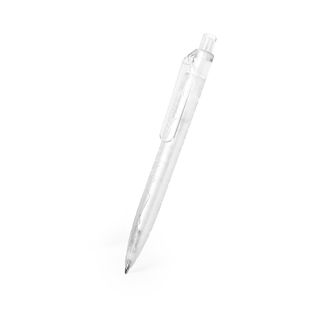 Bolígrafo de línea nature en material RPET, elaborado a partir de plástico reciclado, para así fomentar la reutilización de residuos plásticos y ayudar a la sostenibilidad del planeta. De acabo transparente y con clip especialmente diseñado para marcaje e Carga Jumbo