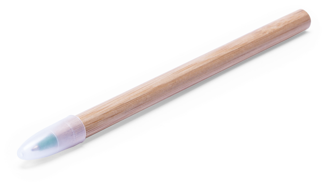 Bolígrafo de línea nature con cuerpo en madera de bambú. Diseño minimalista, con punta en variada gama de colores. Capucha transparente y tinta azul.
