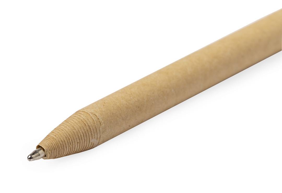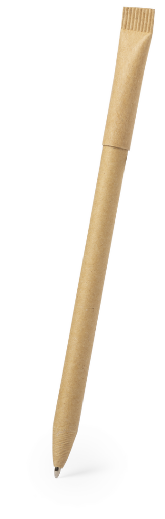 Bolígrafo de línea nature en cartón reciclado y original capucha a juego. Con tinta azul y disponible en variada gama de colores nature.