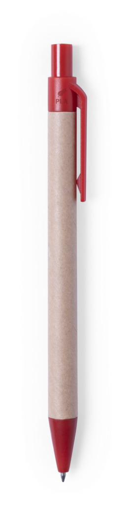 Bolígrafo de línea nature con mecanismo pulsador. Combinación de cuerpo en cartón reciclado de color natural y accesorios en PLA -Ácido PoliLáctico-, que se obtiene a partir de recursos 100% naturales como el almidón de maíz, la yuca o la caña de azúcar,