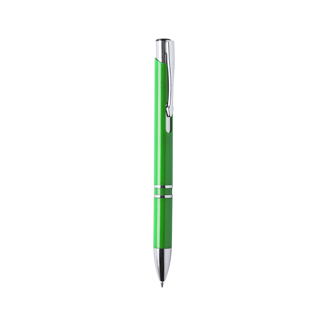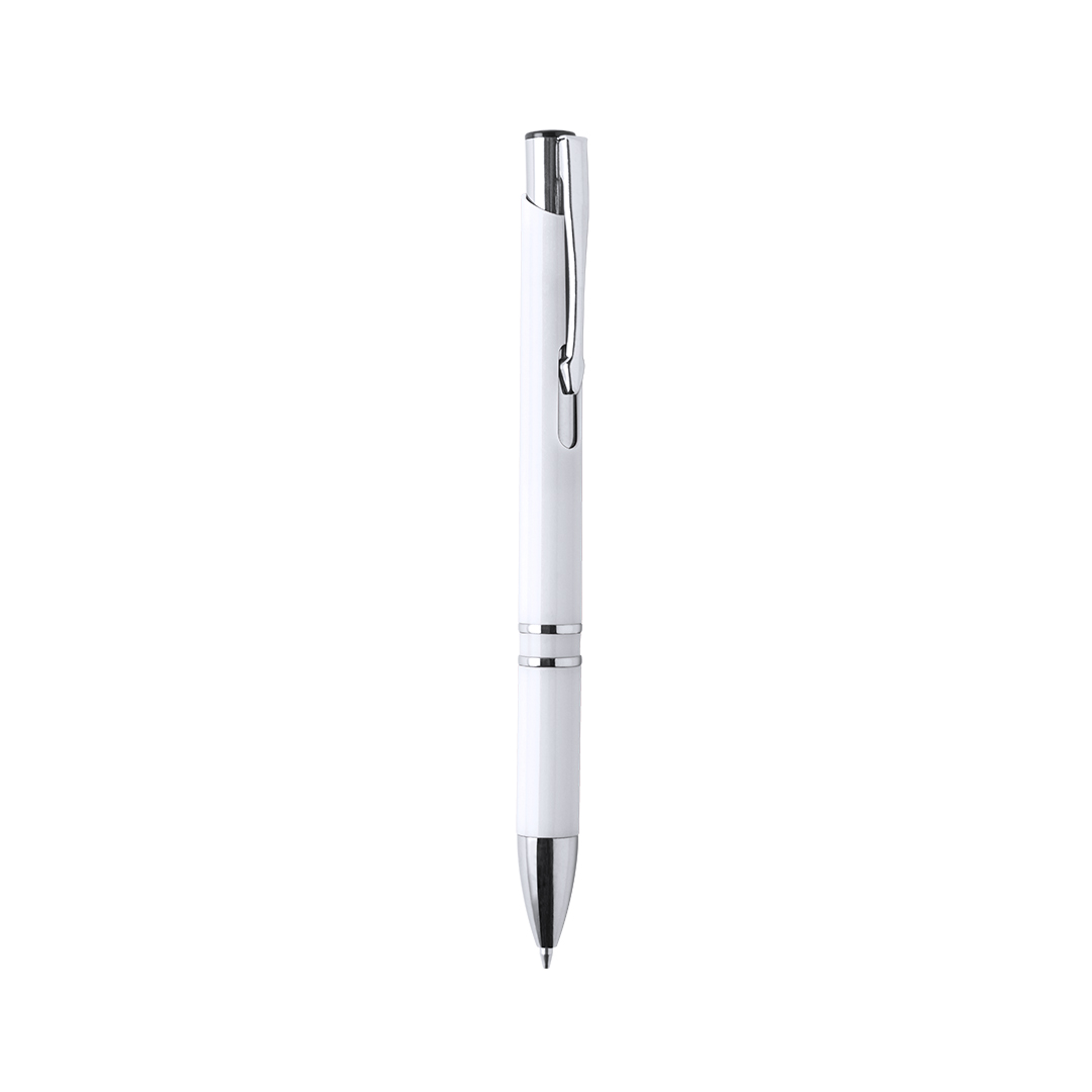 Bolígrafo con cuerpo en brillantes colores. Detalles en cromado y original muesca en cuerpo. De mecanismo pulsador, con cartucho jumbo y tinta azul. Carga Jumbo