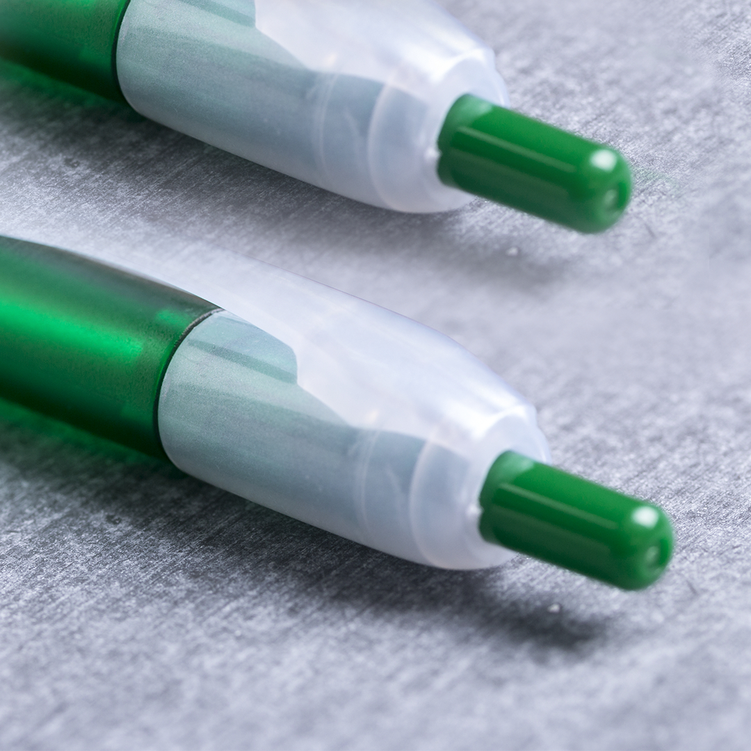 Verde ClaroClásico bolígrafo con mecanismo de pulsador, de atrevido diseño bicolor y cuerpo en colores frosted de suave acabado. Con cómoda empuñadura a juego. Tinta azul.