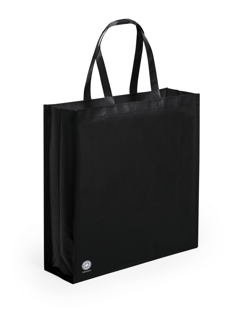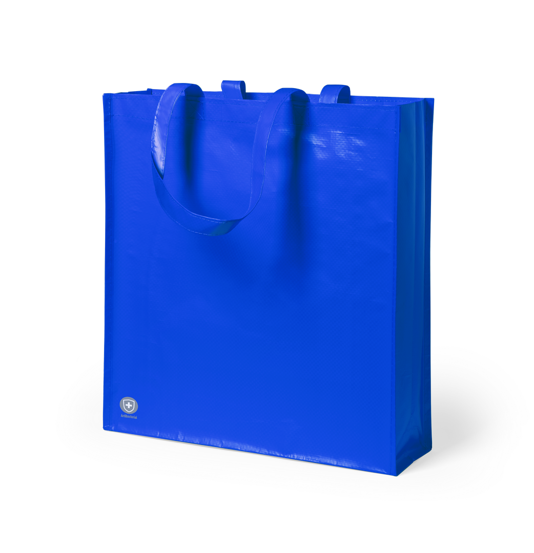 Bolsa antibacteriana en PP-woven de alta resistencia y acabado mate. Disponible en variada gama de colores, con asas medianas reforzadas de 50 cm de largo. Acabado cosido, con fuelles y ribetes reforzados. Los productos con tratamientos antibacterianos s