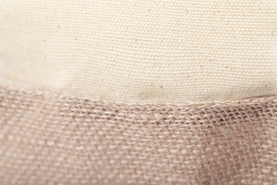 Bolsa de línea nature, en combinación de materiales yute y algodón. Tamaño 48 x 35 + 15 cm, de acabado cosido y con asas largas reforzadas de 90 cm en algodón. Resistencia de hasta 9 kg de peso.