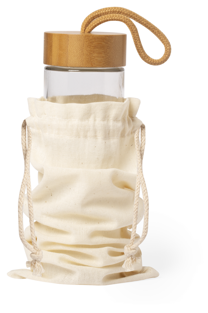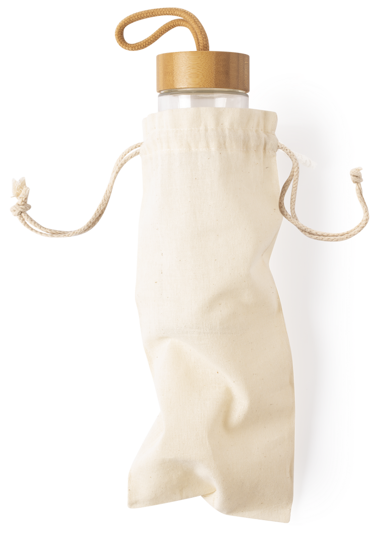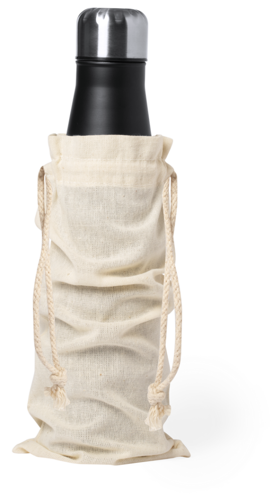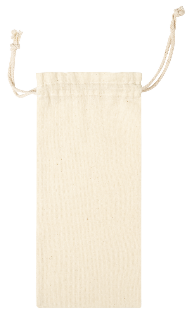 Bolsa de línea nature en material 100% algodón de 105g/m2. Tamaño 12×33 cm, de acabado cosido y con cordones autocierre de algodón. Especialmente diseñada para packaging en botellas y termos.