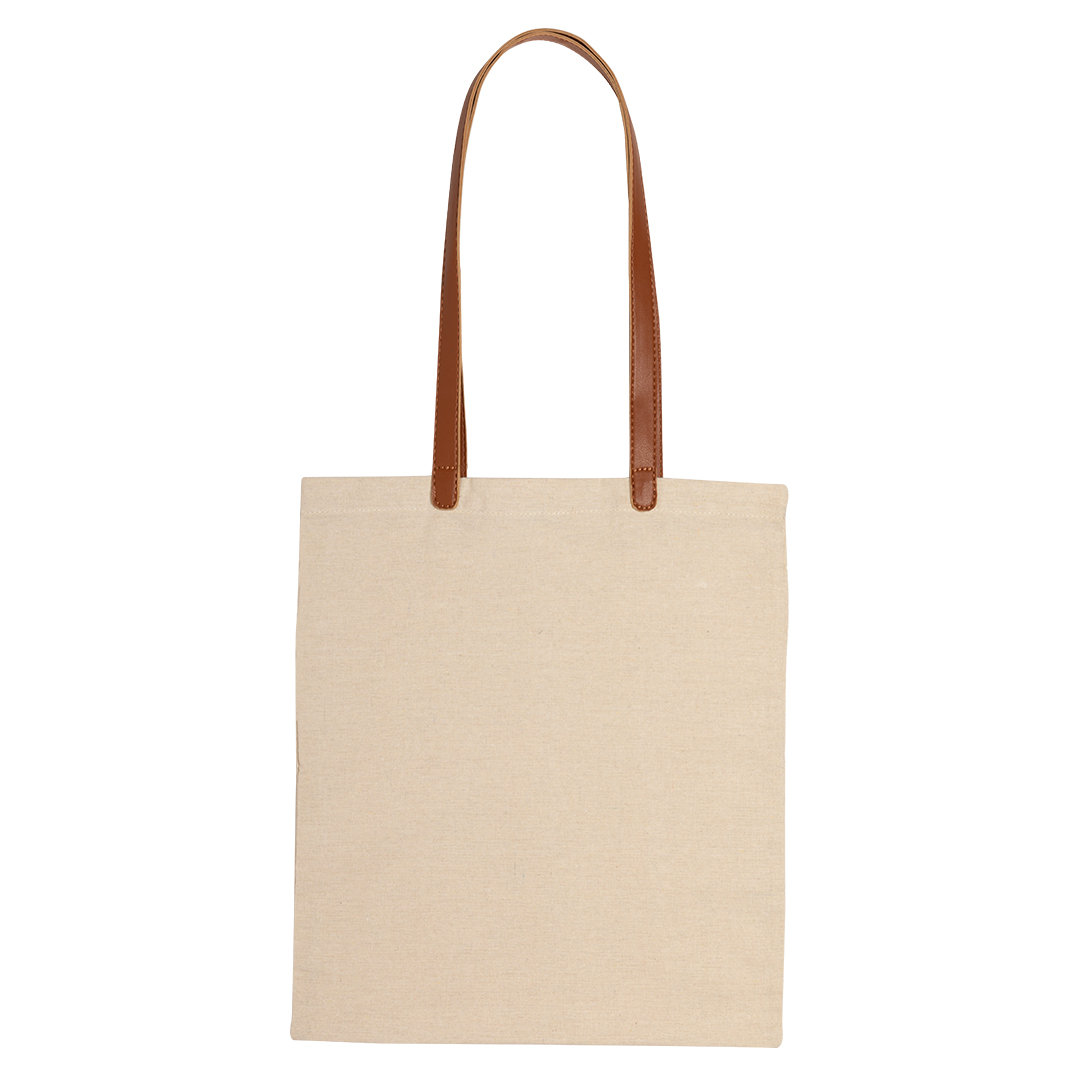 Bolsa de línea nature en material 100% algodón de 220g/m2. Asas largas de 70cm en polipiel marrón, de acabado cosido. Distintivo en etiqueta y resistencia hasta 9 kg de peso. Disponible en variada gama de colores nature.