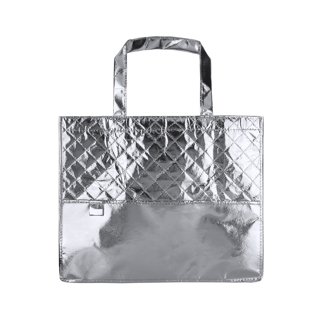 Bolsa en non-woven laminado de acabado extra brillo de 110g/m2, en variada gama de vivos colores. Con asas reforzadas medianas de 55cm, fuelle y acabado cosido. Resistencia hasta 9kg de peso.