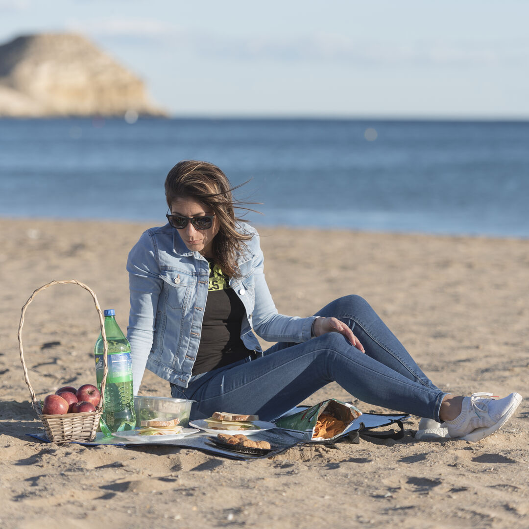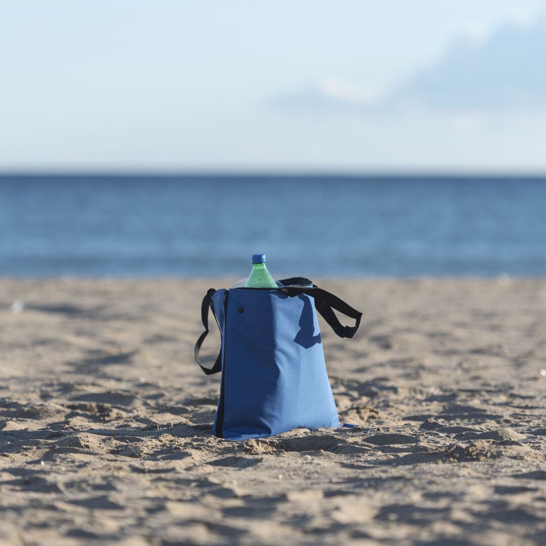 Bolsa nevera en resistente poliéster 600D con cierre de cremallera de apertura total. Con cómodas asas de transporte en nylon, refuerzos con cierre de corchete en esquinas superiores e interior isotermo en acabado de aluminio