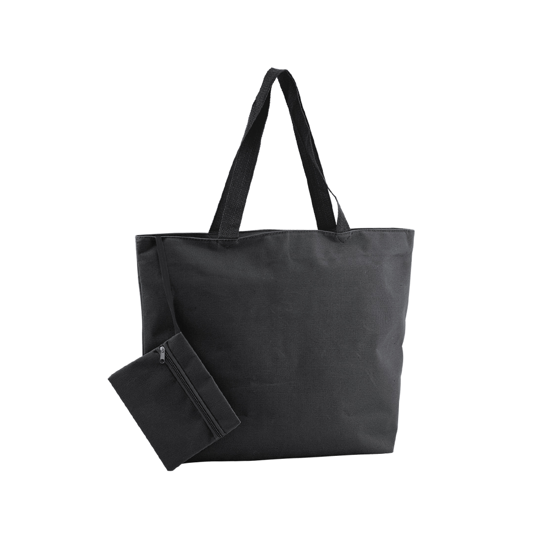 Original bolsa de playa en resistente poliéster 600D de vivos colores con neceser interior a juego. Con asas largas de nylon para hombro y cierre de cremallera. Neceser Incluido