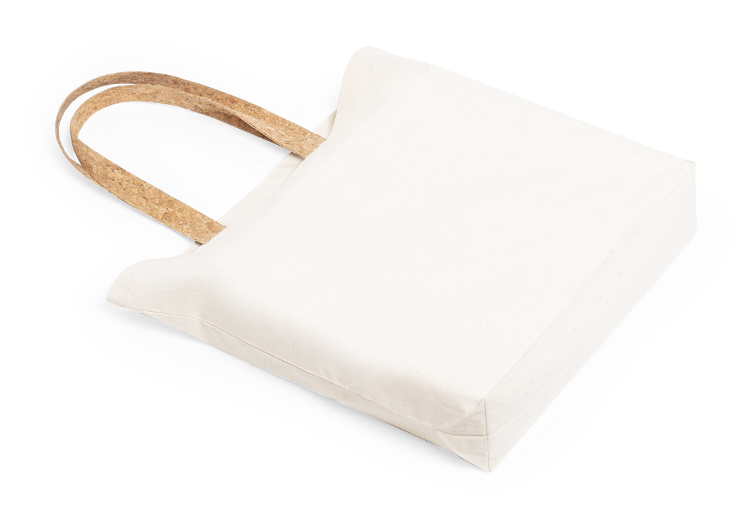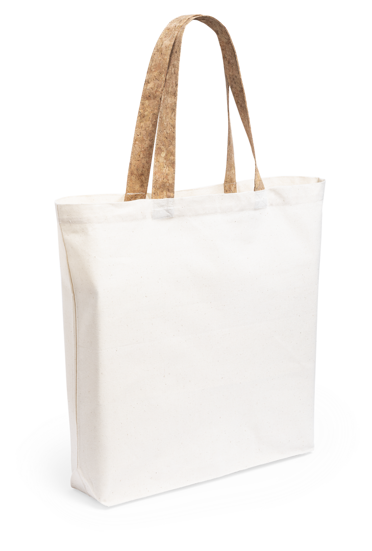 Bolsa de línea nature en resistente algodón de 180g/m2 y originales asas en corcho natural de 53cm reforzadas. Acabado cosido y resistencia hasta 8kg de peso.