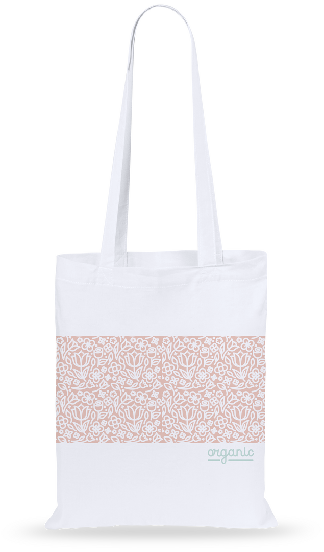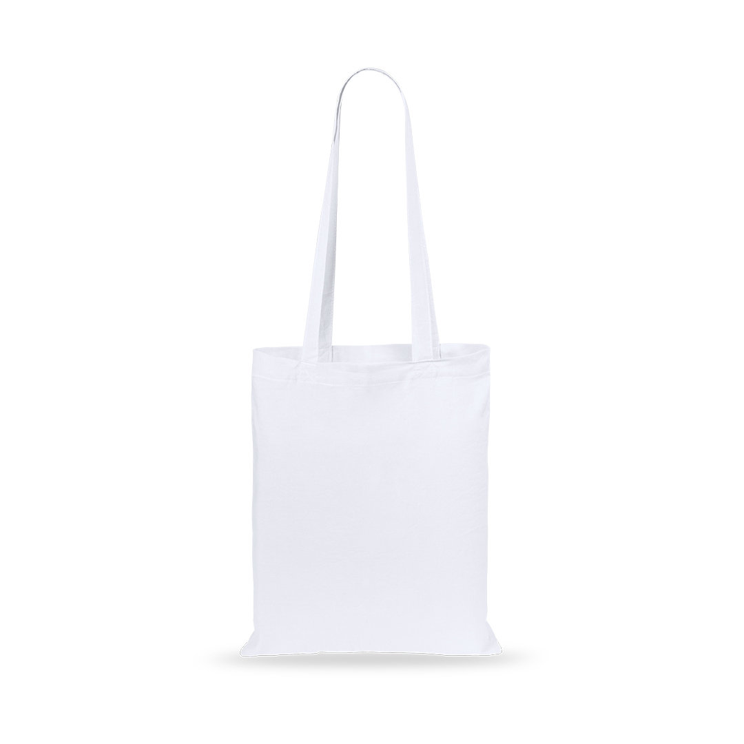 Bolsa de alta calidad en algodón de 140g/m2. Disponible en variada gama de colores, con asas largas reforzadas de 70cm. Resistencia hasta 10kg de peso.