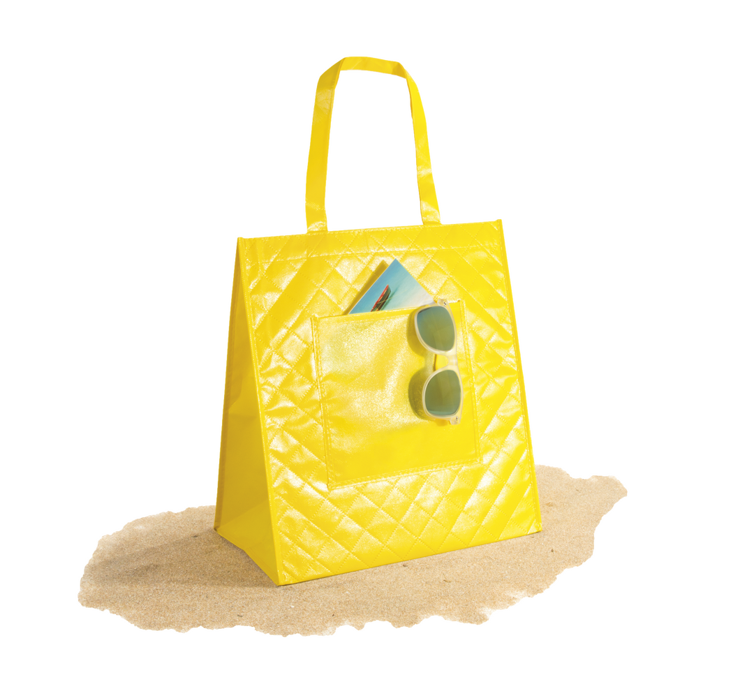 Bolsa de alta calidad en non-woven laminado de acabado metalizado de 160g/m2, en variada gama de vivos colores. Con asas reforzadas medianas de 50cm, fuelle reforzado con ribete y acabado cosido. Resistencia hasta 7kg de peso.