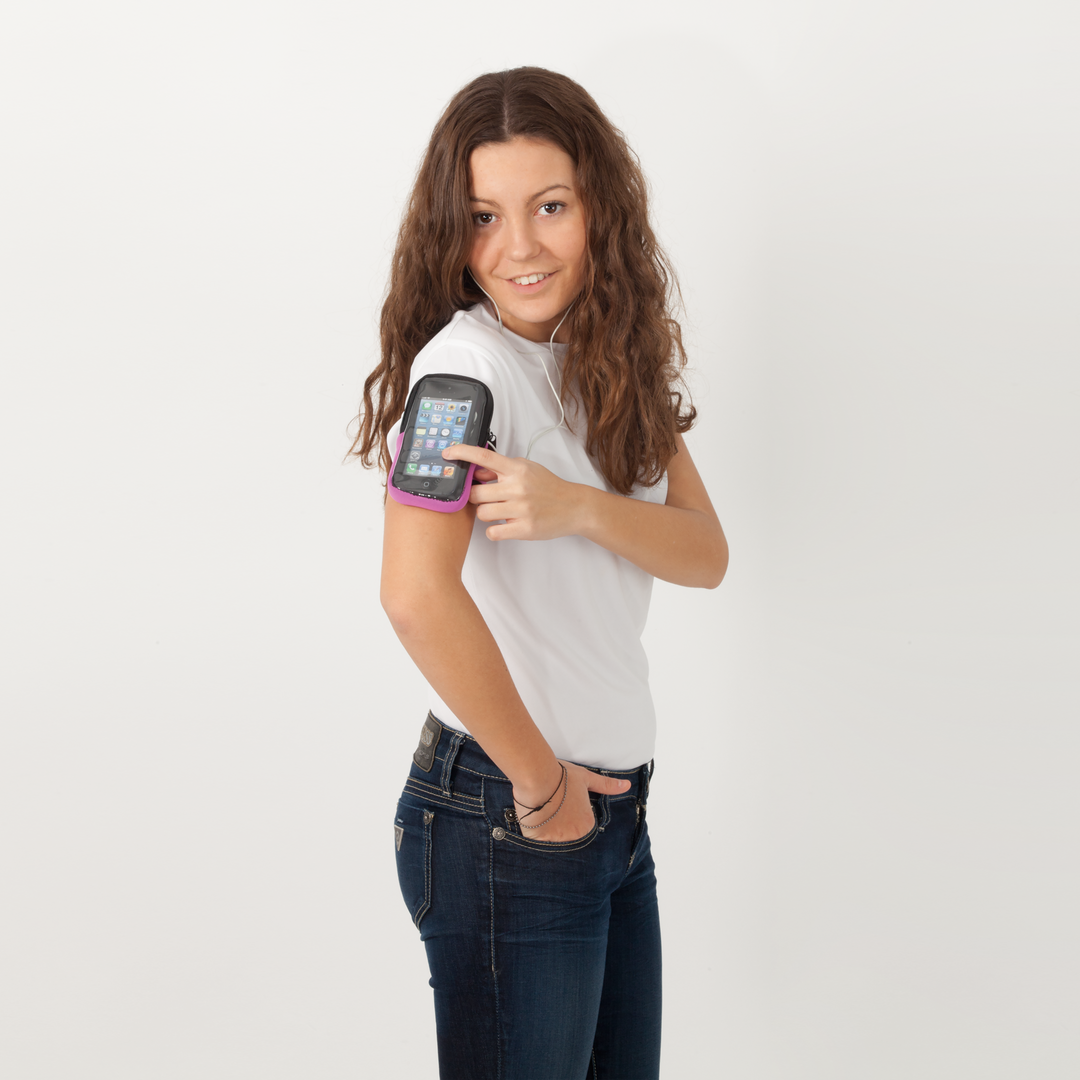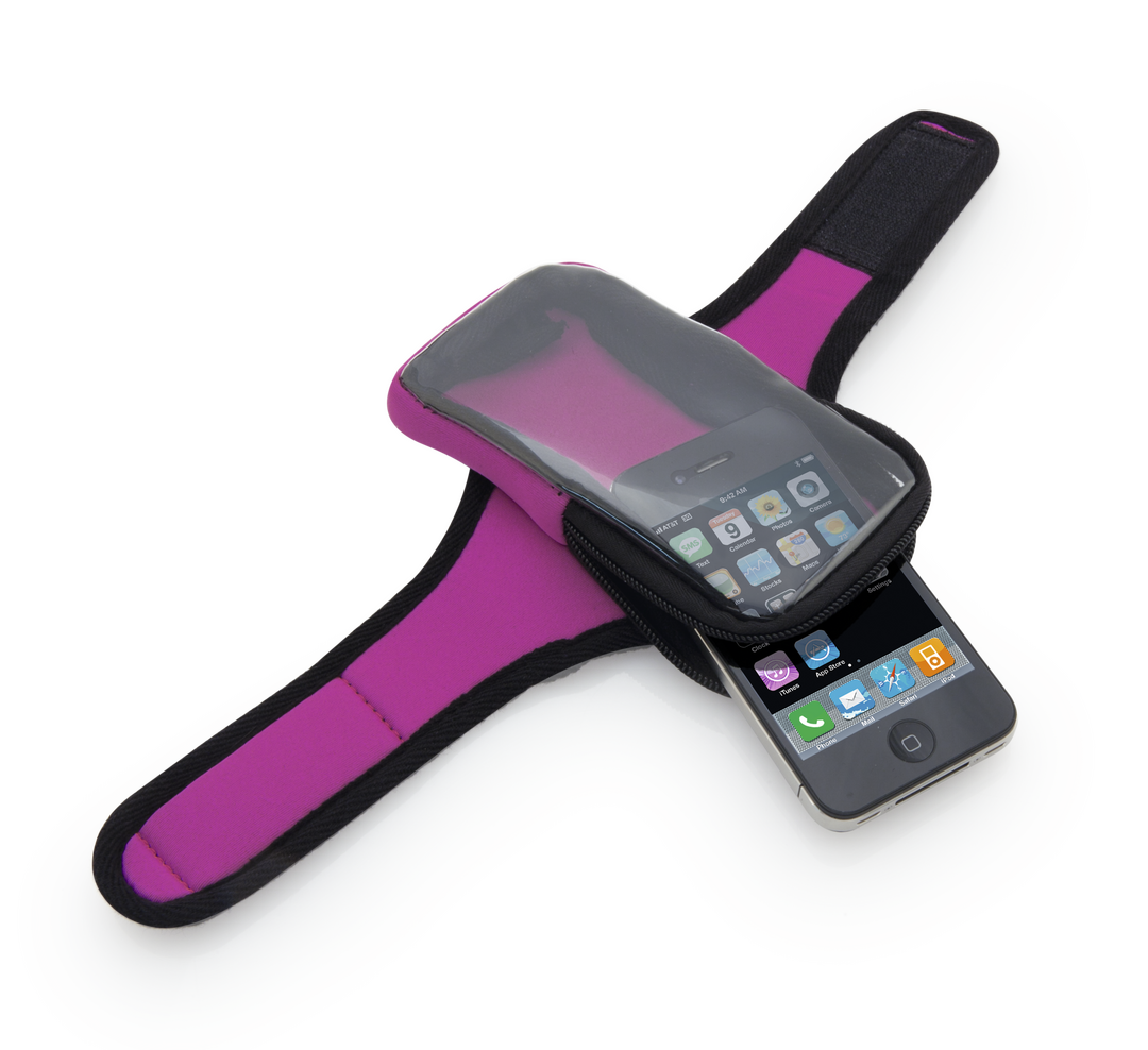 Cómodo brazalete deportivo en suave soft shell, con cierre ajustable de velcro y frontal de PVC con función táctil. Pantalla Táctil