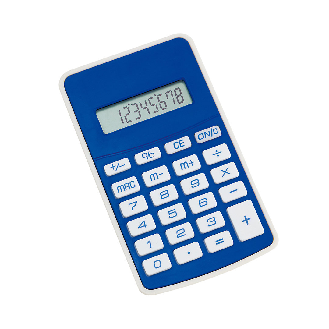 Calculadora de 8 dígitos en original diseño bicolor de vivos colores y con suave teclado. Pila de botón incluida con film protector y presentada en caja individual. Pila Botón Incluida