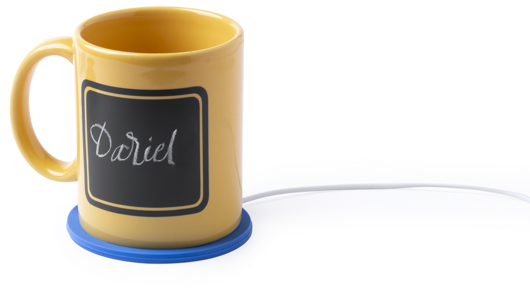 Calentador de tazas con conexión USB y de superficie en PVC, especialmente diseñada para mantener el calor. En vivos colores y compatible con todo tipo de tazas. Conexión USB. Cable Incluido