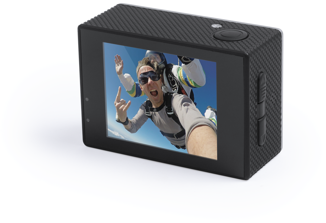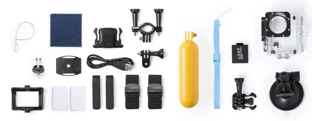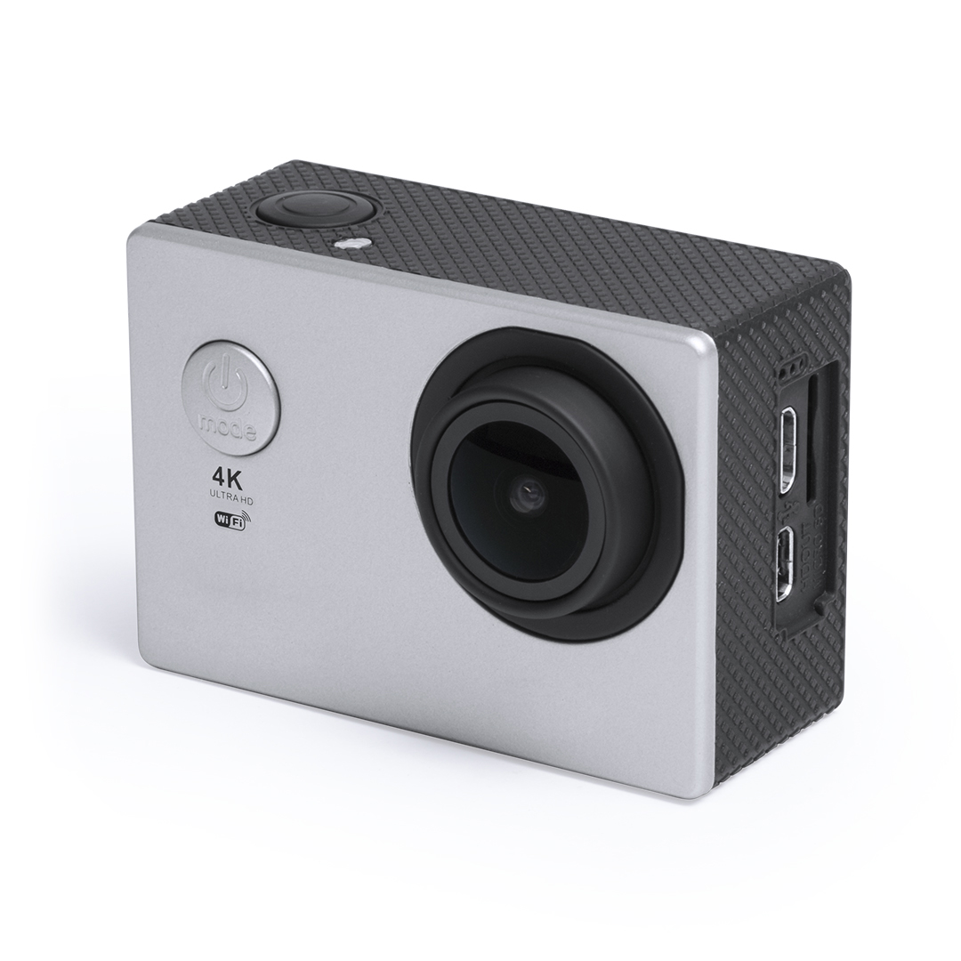 Cámara deportiva de alta calidad de captura de vídeo HD 4K, de diseño compacto y resistente, especialmente diseñada para uso intensivo. Incluye carcasa sumergible hasta 30m de profundidad y multitud de accesorios para ajuste en casco, manillar o cinturón, 4K. Wifi. Pantalla LCD 2″. 16 Accesorios. Multilenguaje. Recargable USB. Cable Incluido