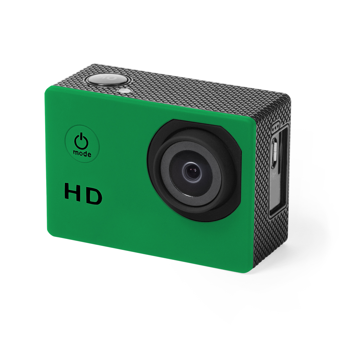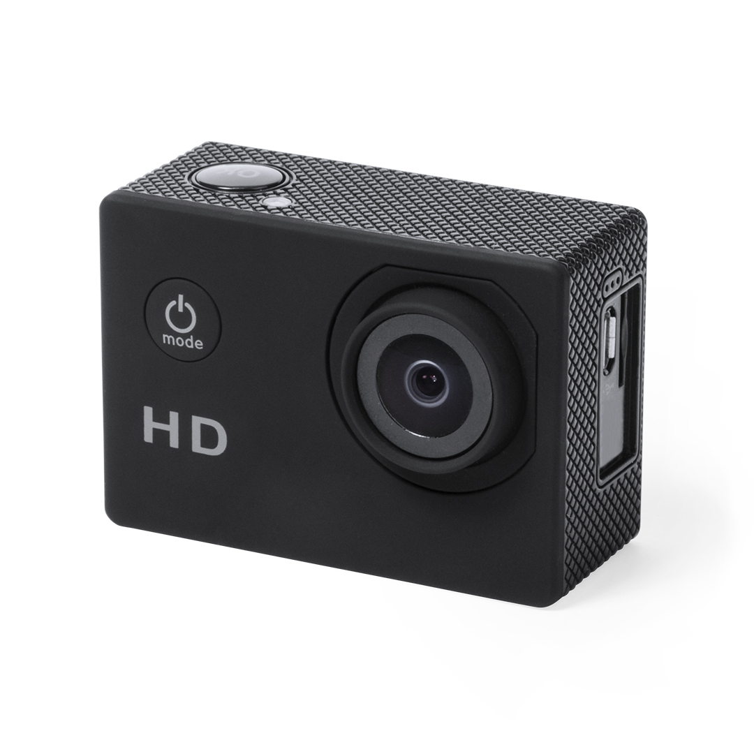 Cámara deportiva de alta calidad de captura de vídeo HD 720p, de diseño compacto y resistente, especialmente diseñada para uso intensivo. Incluye carcasa sumergible hasta 30m de profundidad y multitud de accesorios para ajuste en casco, manillar o cinturó 720P. Pantalla LCD 2″. 14 Accesorios. Multilenguaje. Recargable USB. Cable Incluido