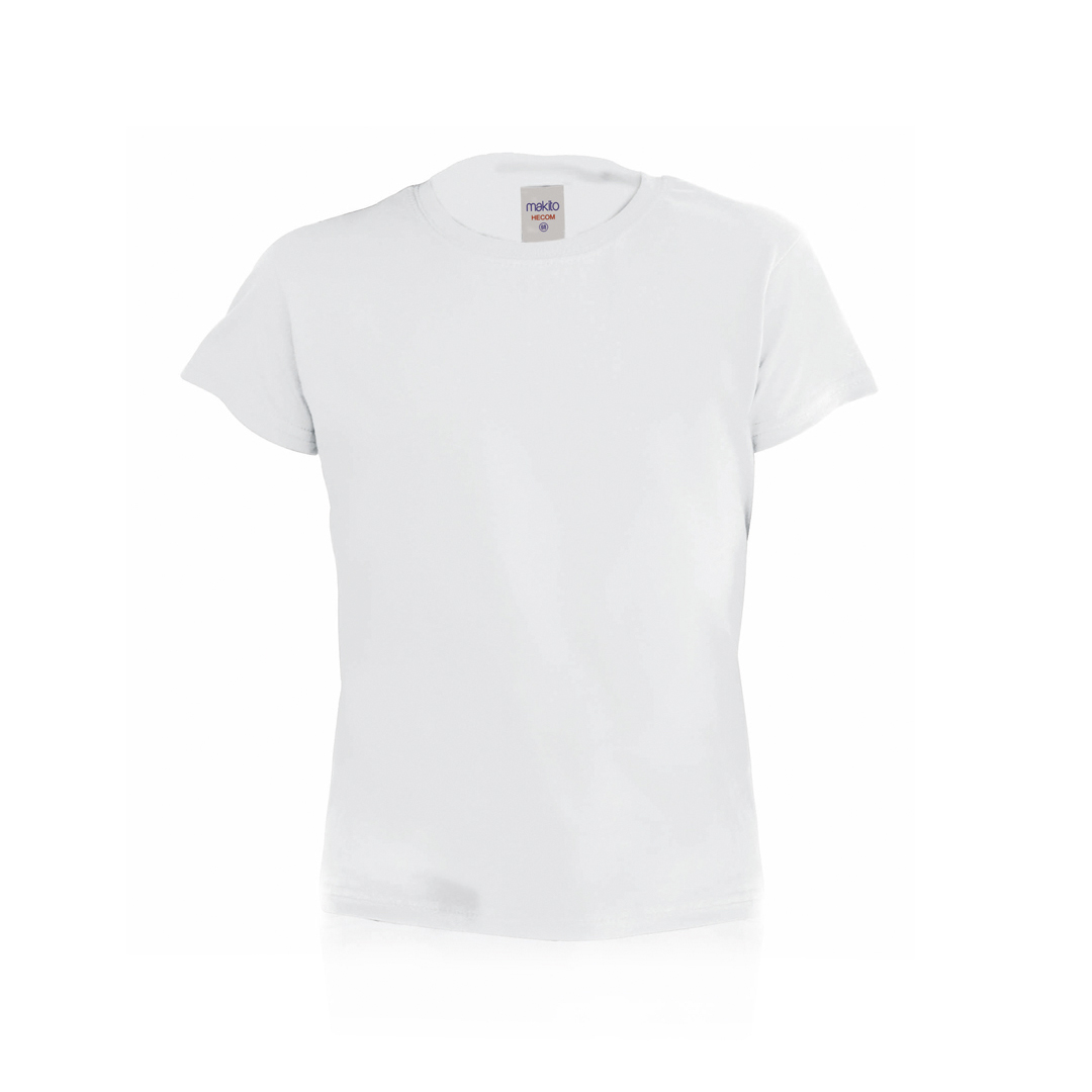 Camiseta para niño en material 100% algodón de 135g/m2. Disponible en color blanco y en tallas 4-5, 6-8, 10-12. Tallas: 4-5, 6-8, 10-12