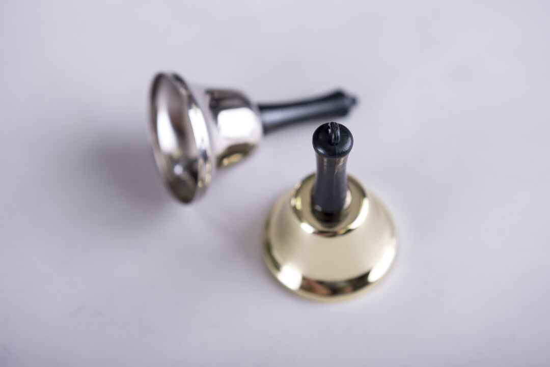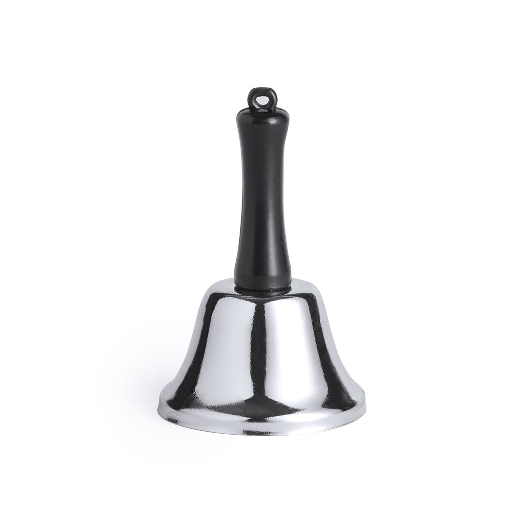 Campanita metálica para que no pases desapercibido. Con cómodo mango troquelado para transporte. Disponible en colores cromado y dorado de acabado brillante.