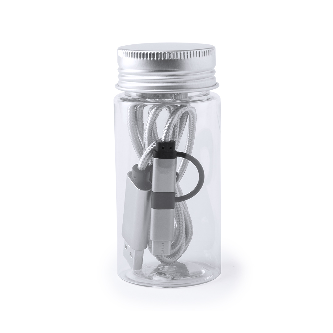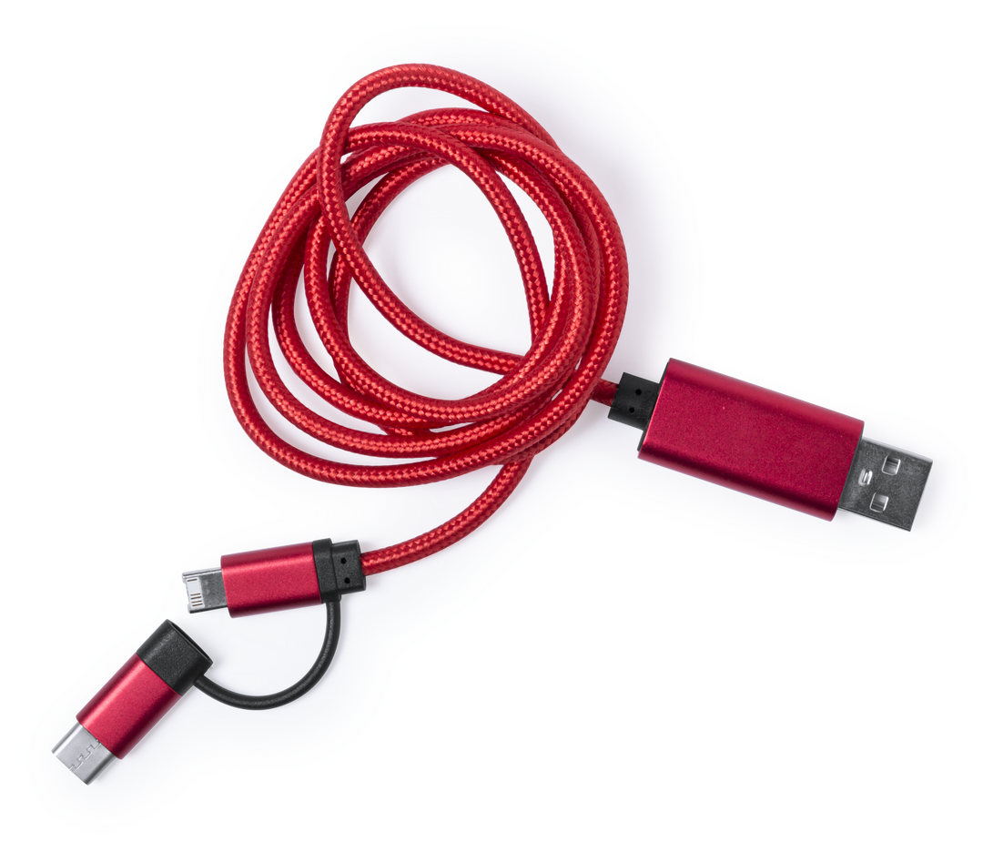 Cable cargador Tipo-C y con conexión dual micro USB/Lightning. Con recubrimiento de nylon extra resistente para un uso intensivo. De 100cm de longitud, con conectores de aluminio, especialmente diseñado para marcaje en láser. Disponible en variada gama de Conexión Micro USB, Tipo C y Lightning