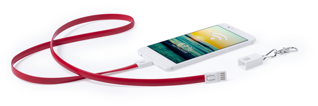 Cable USB cargador y sincronizador con conexión tipo C. En variada gama vivos colores, y con diseño extraplano. De 43,5cm de longitud, incluye accesorio de plegado con cierre de mosquetón metálico. Función de sincronización en dispositivos Android compati Conexión Tipo C