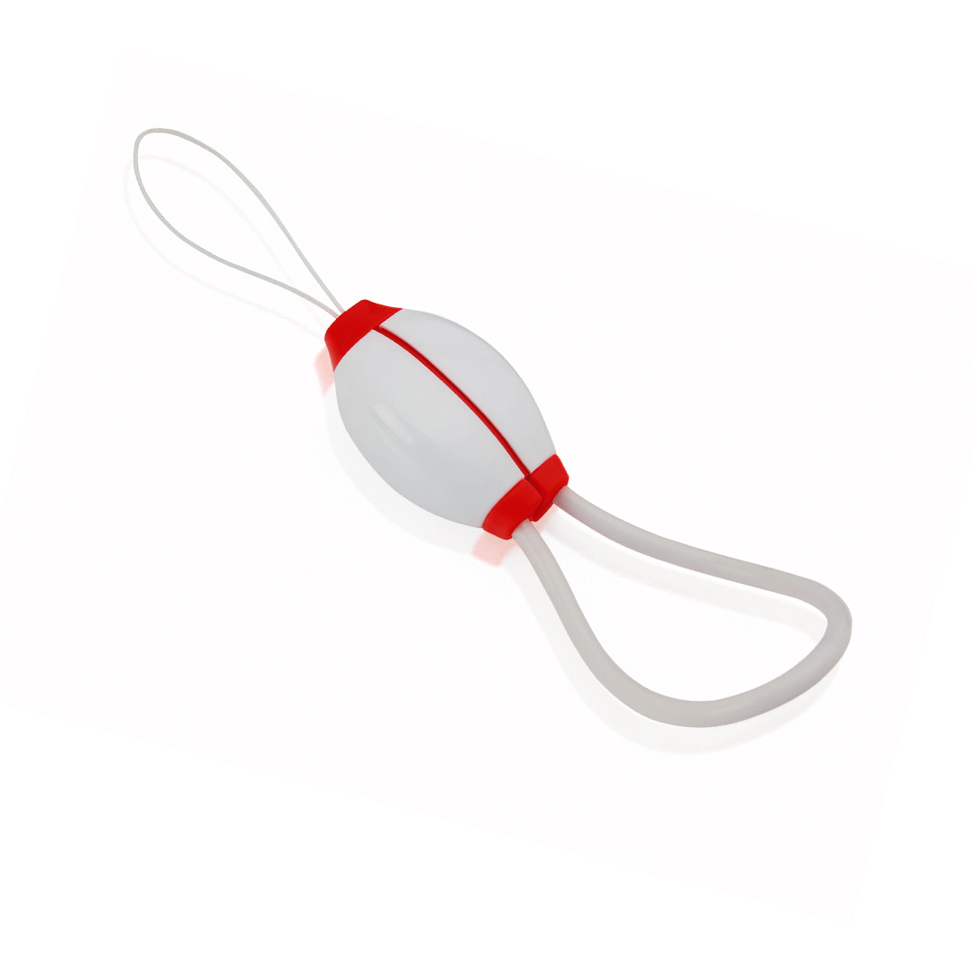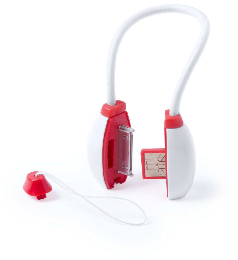 Práctico cable sincronizador y cargador, desmontable y con asa de transporte en diseño bicolor.