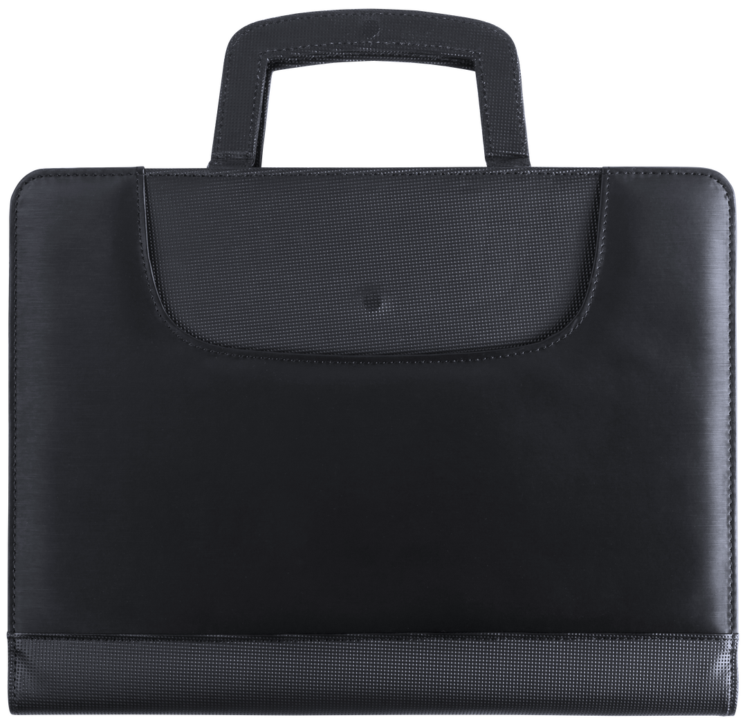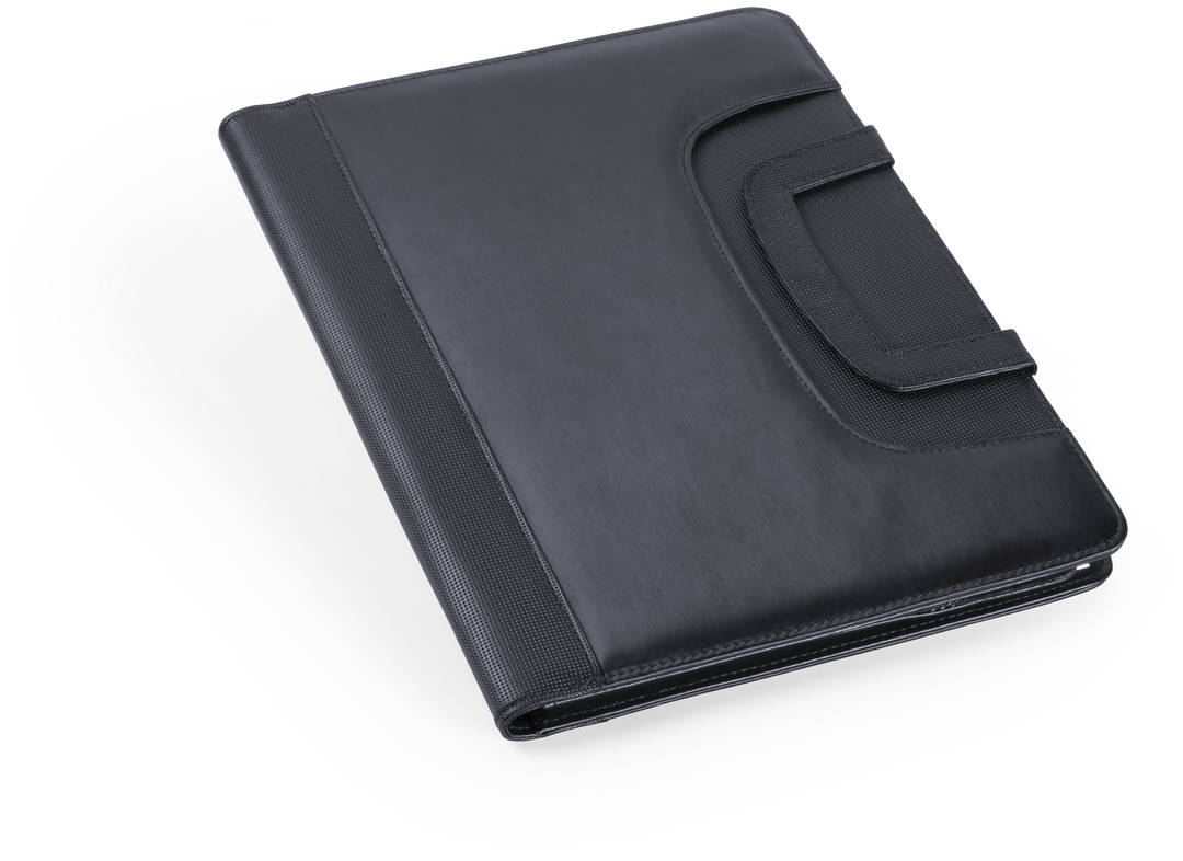 Elegante funda carpeta de acabado en suave polipiel acolchada para tablets de hasta 12 pulgadas. Con prácticas asas imantadas y funda soporte interior 360º extraíble para tablet con diferentes posiciones. Incluye bloc extraíble de 20 hojas con distribució Bloc 20 Hojas
