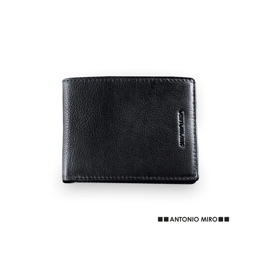 Cartera de Antonio Miró con suave cuerpo acabado en piel de sobrios colores. Con interior forrado, dos billeteros, 6 compartimentos para tarjetas y 2 bolsillos. Con logotipo de la marca en parte exterior y presentada en elegante estuche individual con log
