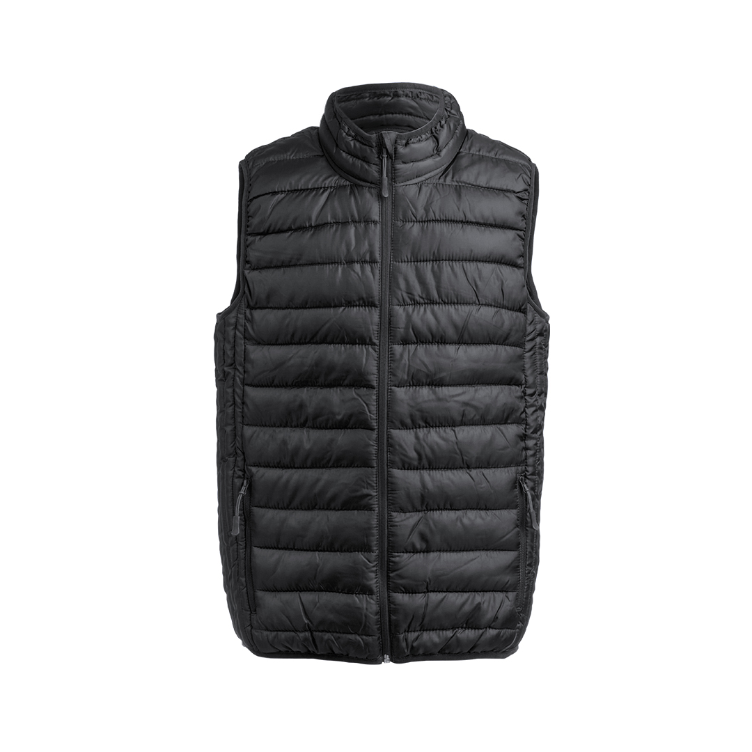 Chaleco en cálido y suave material 100% polyester. En material extra ligero, resistente al agua y cortavientos, con acolchado interior. Cierre de cremallera con cinta en tirador y amplios bolsillos laterales. Cremallera de cuello con tapeta y bolsillos la Resistente al Viento y al Agua. Funda Poliéster Incluida. Tallas: S, M, L, XL, XXL