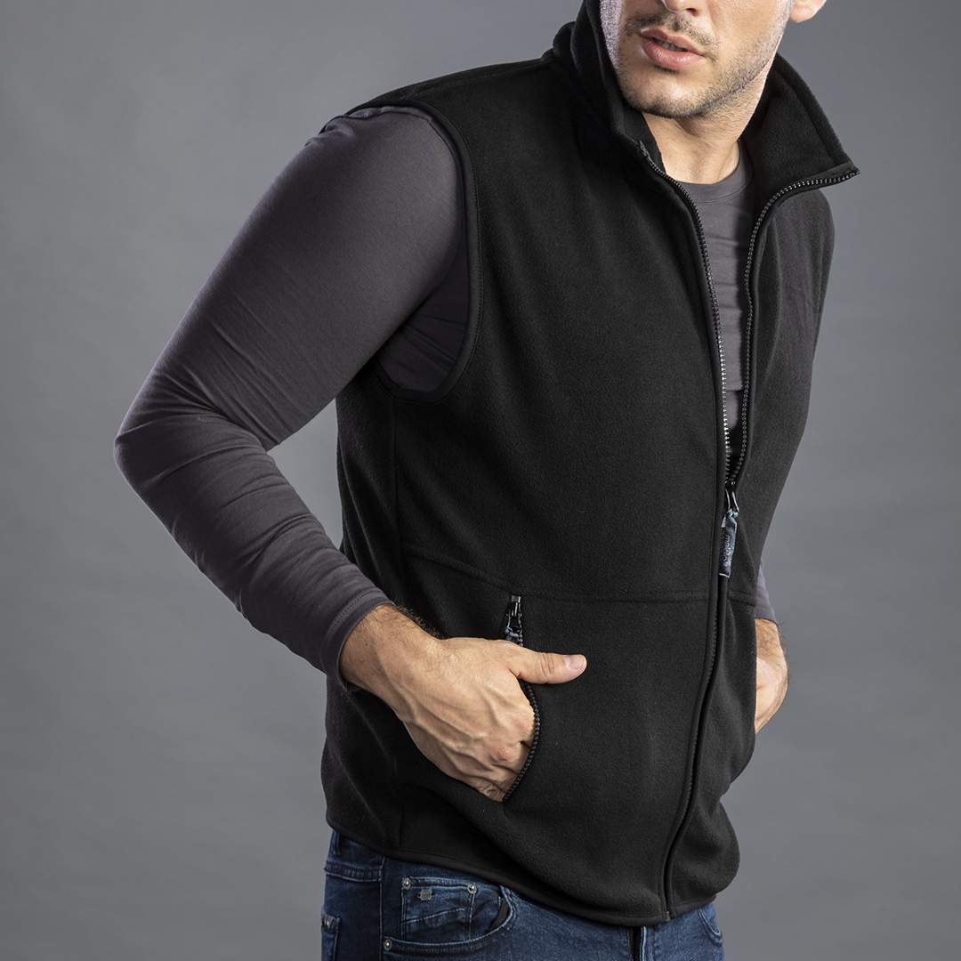 Chaleco en cálido y suave polar fleece de 280g/m2 con tratamiento anti-pilling. Con cuello de interior en color, cierre de cremallera con cinta en tirador, bolsillos laterales de cremallera y cintura elástica. Disponible en tallas M, L, XL, XXL. Tratamiento Anti-Pilling. Tallas: M, L, XL, XXL