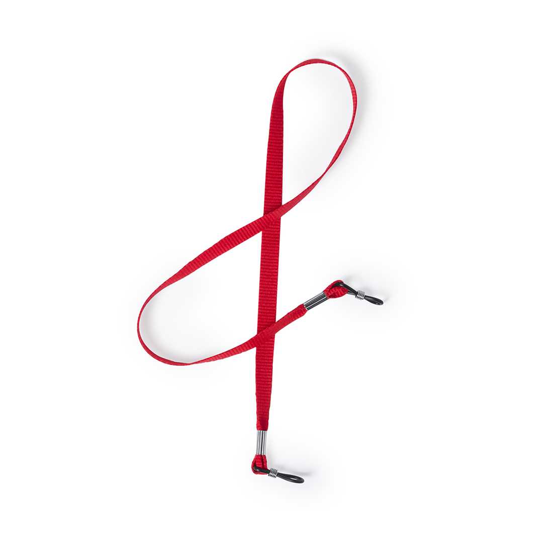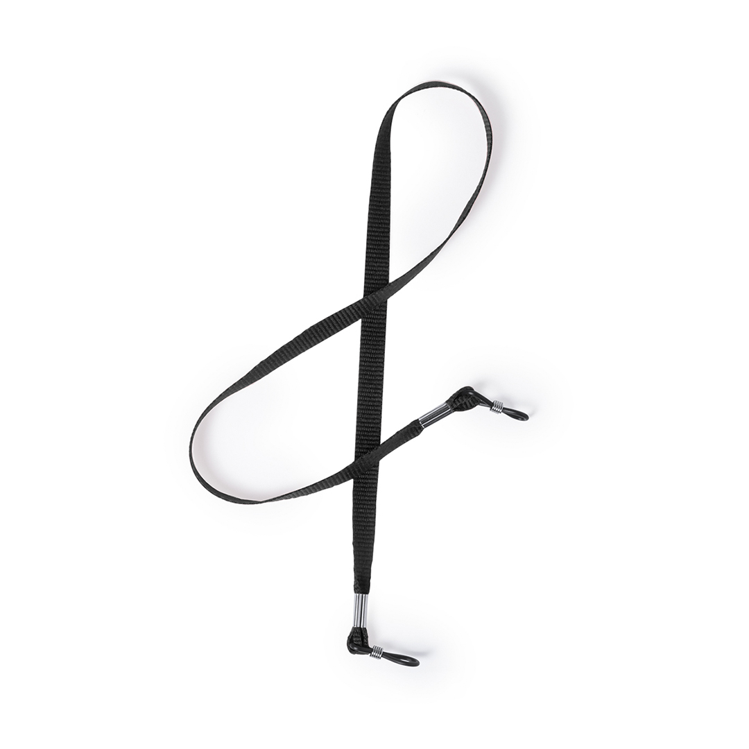 Cómoda cinta para gafas en suave y resistente poliéster de variados colores. Con accesorios de fijación regulables.