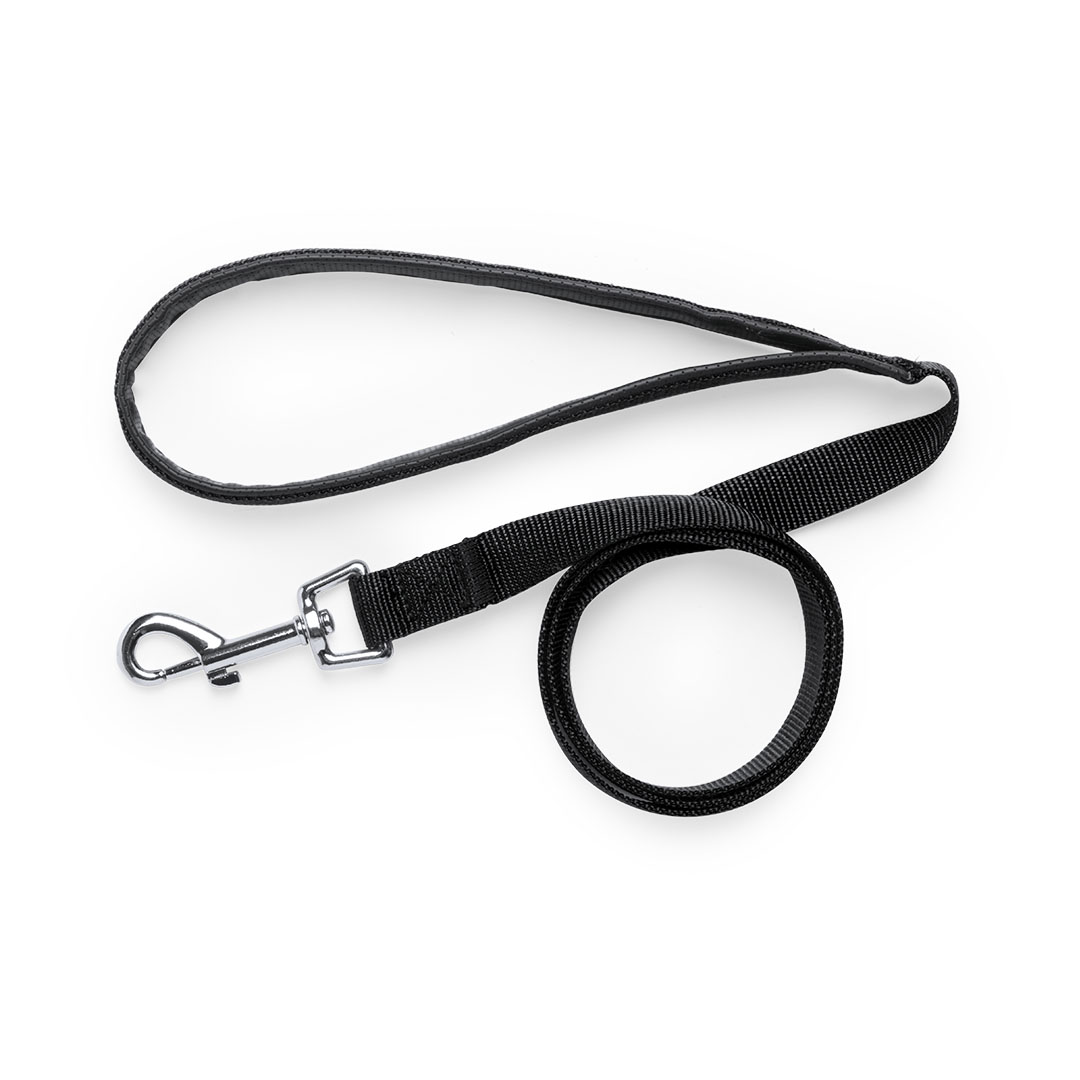 Cinta de paseo en resistente poliéste y 130 cm de largo, especialmente diseñada para perros de gran tamaño. Con asa reforzada y acolchada en PU. Mosquetón de enganche cromado y disponible en vivos colores.