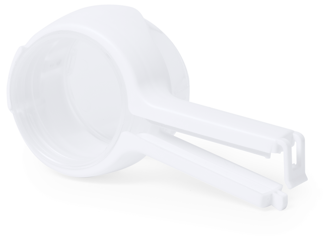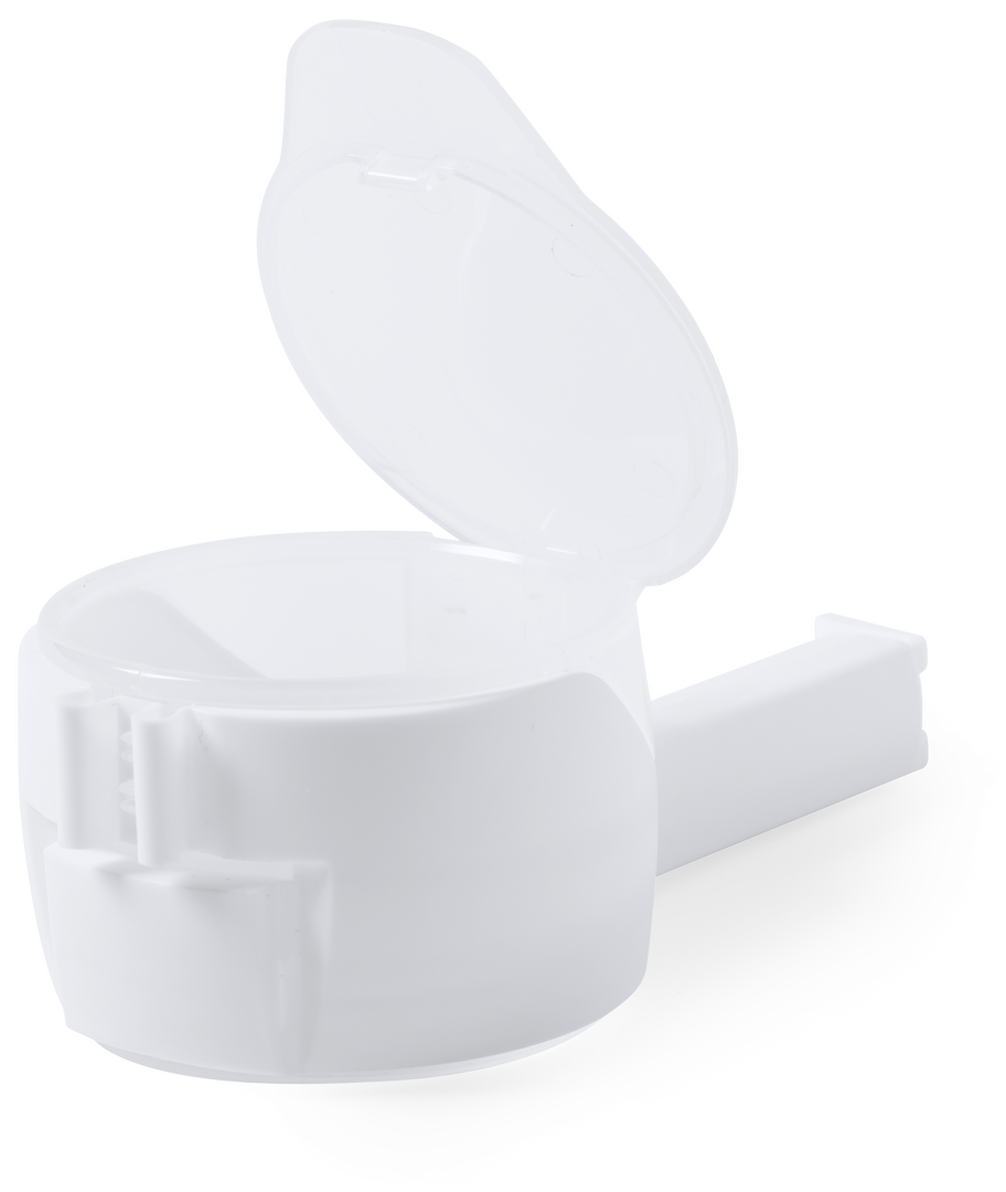 Original clip dispensador en resistente material PP, con pinza universal y tapa de seguridad.