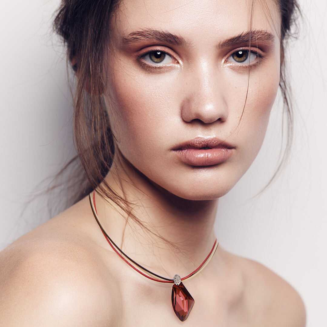 Collar de Swarovski con triple cadena y colgante en cristal en tonos brillantes con elegante lágrima.