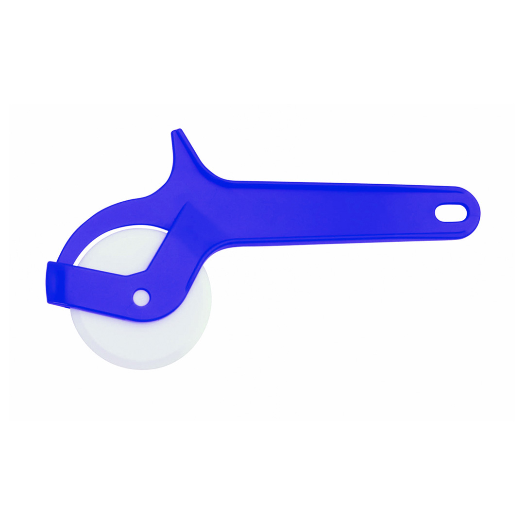 Cortapizzas en variada gama de vivos colores con cuchilla de corte en color blanco y mango troquelado para colgar.