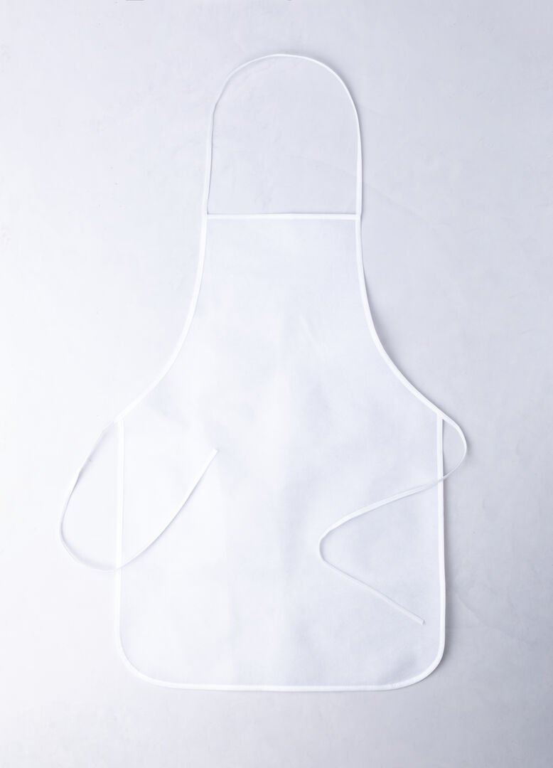 Delantal especialmente diseñado para sublimación en non-woven de 80g/m2. Amplia superficie de marcaje 100% personalizable y cintas de ajuste a juego.