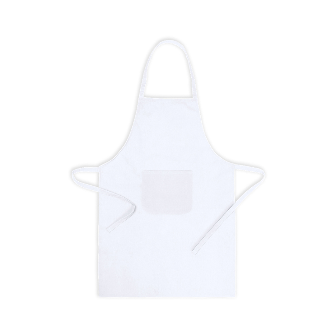 Delantal en material TC -combinado de algodón y poliéster-. En variada gama de vivos colores, con bolsillo frontal y cintas de ajuste. De corte por debajo de la rodilla.