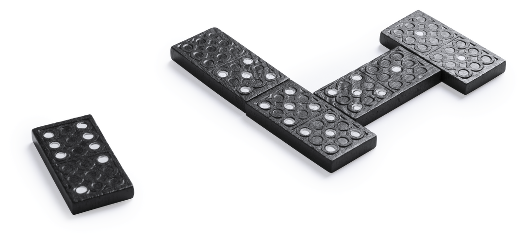 Dominó clásico de 28 piezas fabricado en madera. Piezas en sobrio diseño de color negro con detalle en blanco. Presentado en estuche individual de madera con tapa. 28 Piezas
