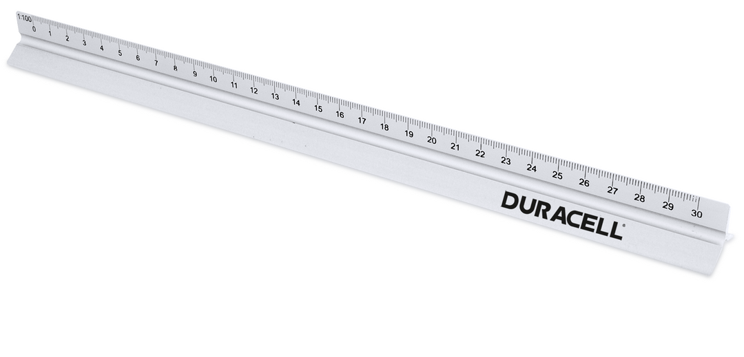 Escalímetro de aluminio en diseño triangular de 30cm. Escalas 1:20/1:25/1:50/1:75/1:100. Con cara lisa para marcaje. Presentado en caja individual. 30 cm. Escalas: 1:20, 1:25, 1:50, 1:75, 1:100