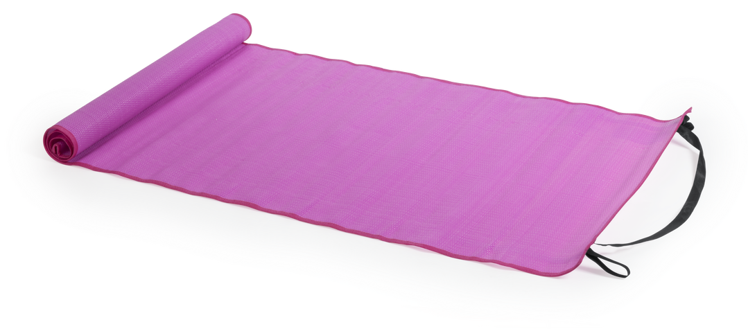 Esterilla plegable tamaño maxi de 180x60cm en PP trenzado de alta resistencia. En variada gama de vivos colores brillantes, con elásticos de cierre y asa de transporte.