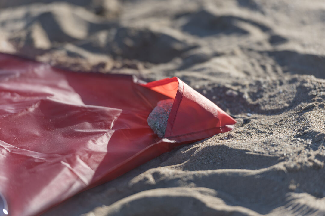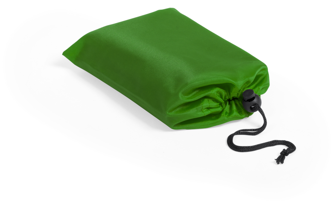 Esterilla para picnic en suave poliéster 190T de alta resistencia. En tamaño 145x105cm, con bolsillos en las esquinas para fijar con piedras o arena y cierre de cordón con accesorio de ajuste.