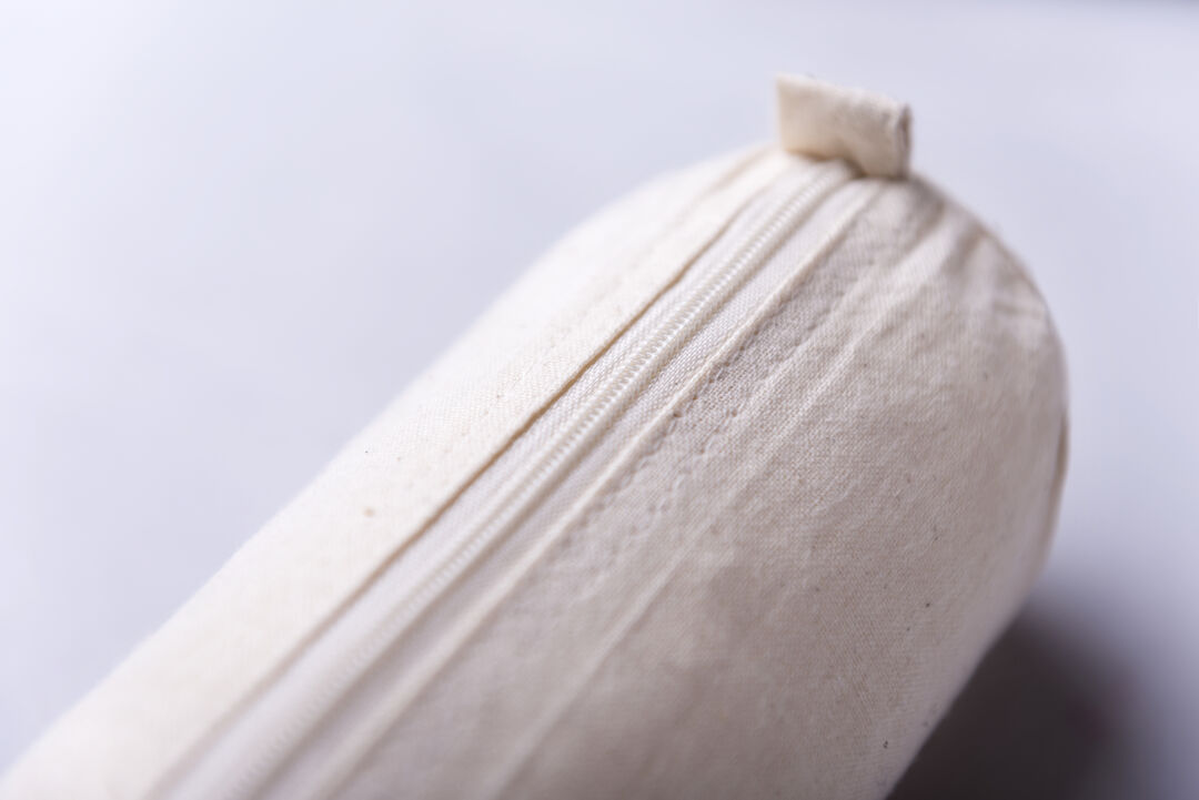Estuche de línea nature en material 100% algodón crudo. Con clásico diseño cilíndrico, cremallera a juego y prácticas asas para fácil apertura.